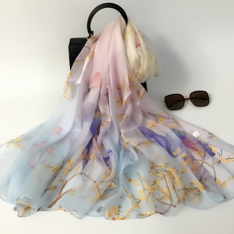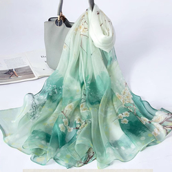 2025 nuevo chal de seda de gasa de alta calidad para mujer 100% bufanda larga de tul de seda Natural 175CM * 110CM personalización Floral al por mayor